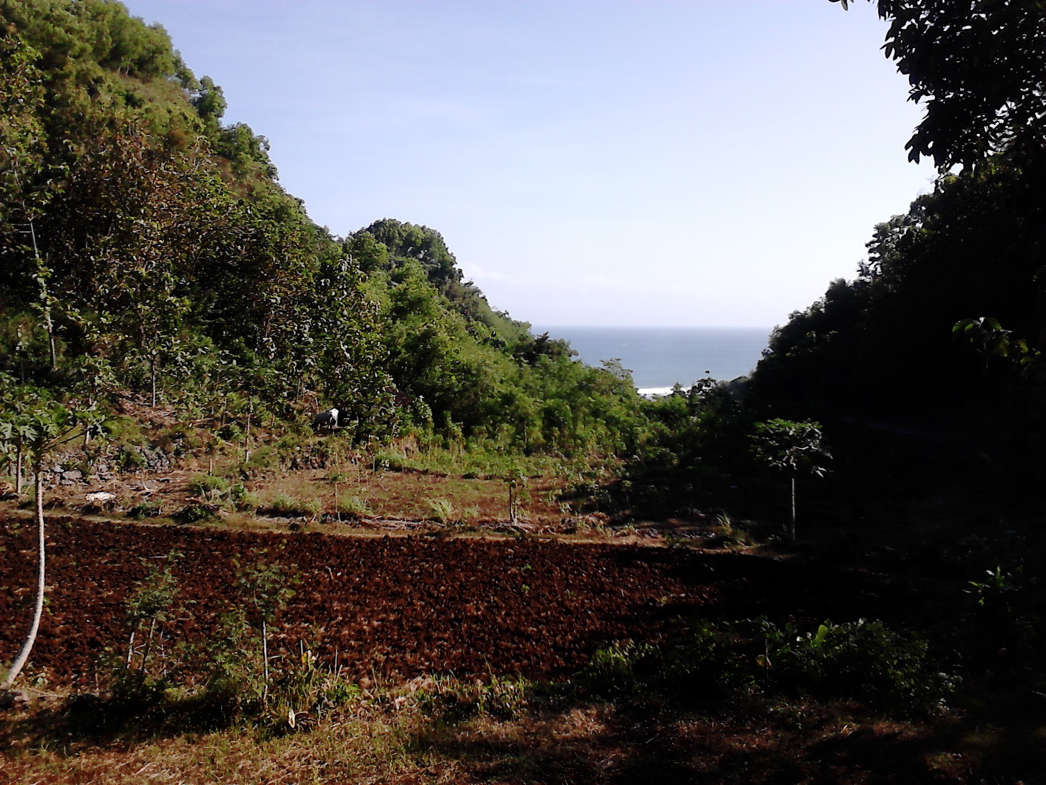 Melalui sepetak ladang ketela yang entah punya siapa, kami akhirnya sampai di puncak bukit.