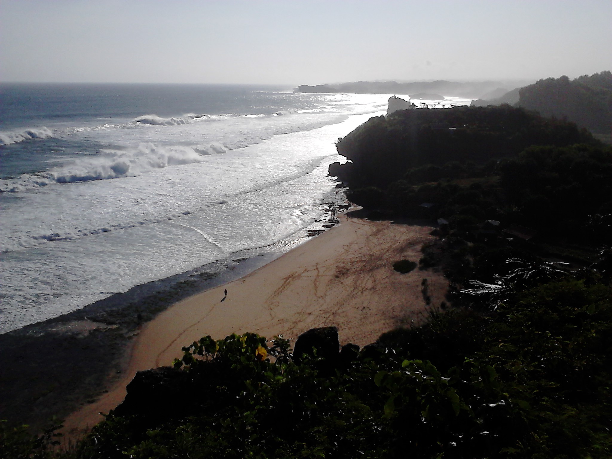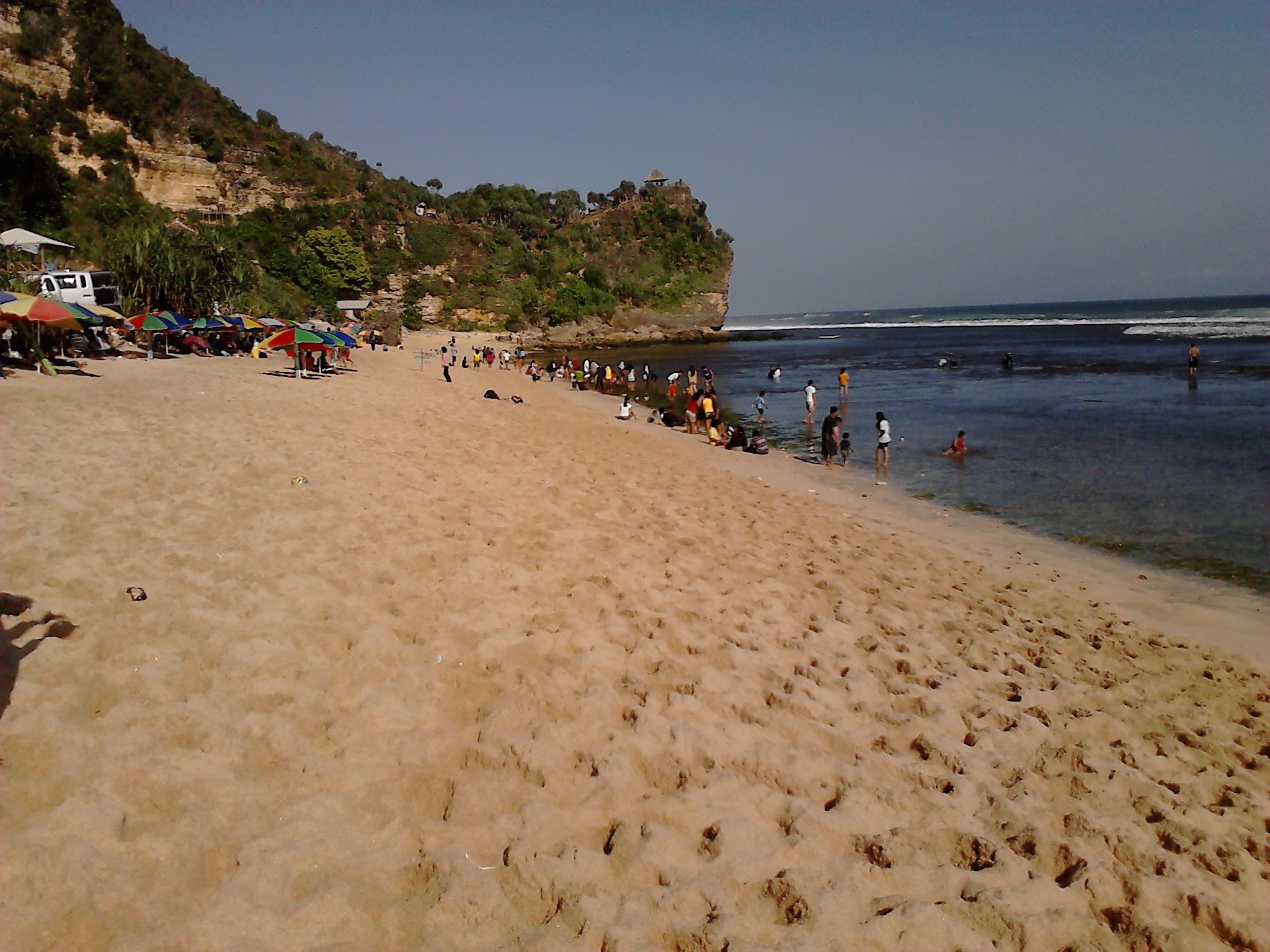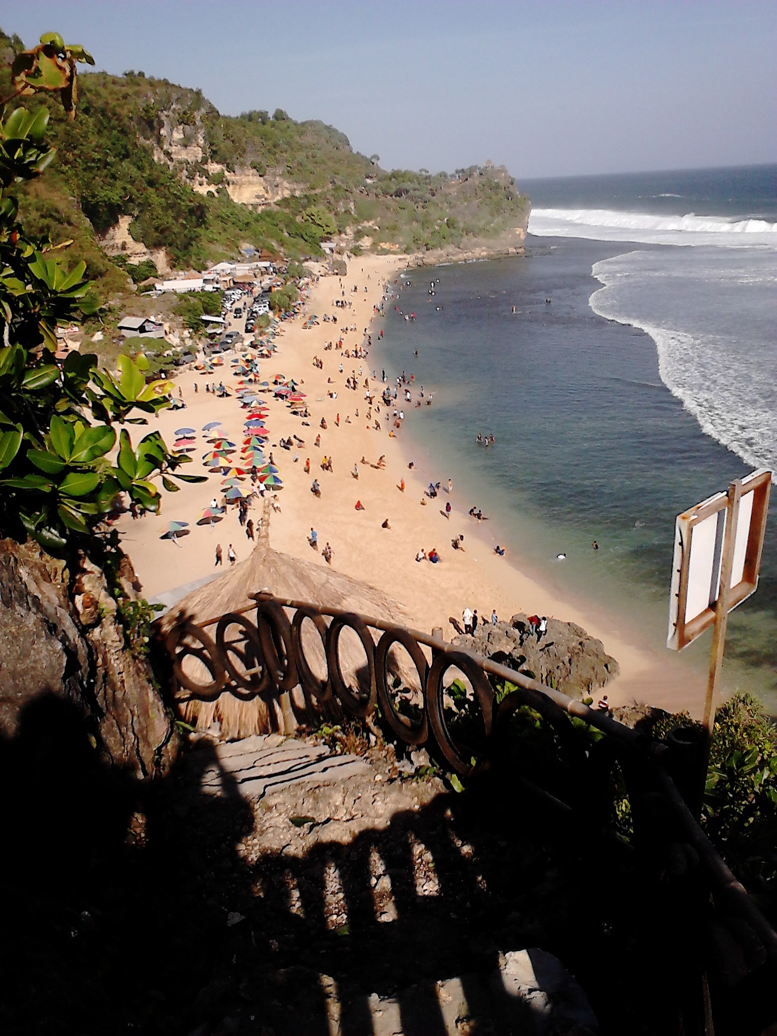Selain itu, gue juga menyayangkan kurangnya fasilitas transportasi umum yang disediakan pemerintah untuk memudahkan akses ke pantai-pantai indah Gunung Kidul ini. Akhirnya, nyaris nggak ada turis asing yang nongol di sini, hampir semuanya turis lokal yang kadang membuang sampah seenaknya dan nggak berani buka-bukaan. Turis asing bakal seneng banget dengan pantai pasir putih kayak gini, dan mereka lebih beradab sebagai wisatawan. Coba saja ada Trans Jogja atau monorel dengan rute dari kota menuju kawasan terintegrasi pantai karst Pegunungan Sewu ini. That would be amazing! Soalnya, turis mancanegara di Jogja itu ke mana-mana naik Trans Jogja.