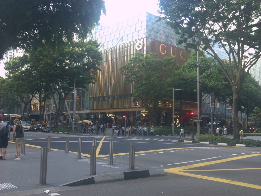 Setelah beberapa menit membuang waktu, kami paksakan diri untuk meneruskan langkah menyusuri Orchard Road. Sebuah gedung besar yang tersembunyi oleh sebuah gerbang dan pohon-pohon besar menarik perhatian gue. Itu apa ya? Istana negara? Entahlah. Kami terus berjalan melalui Plaza Singapura.