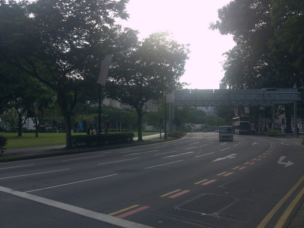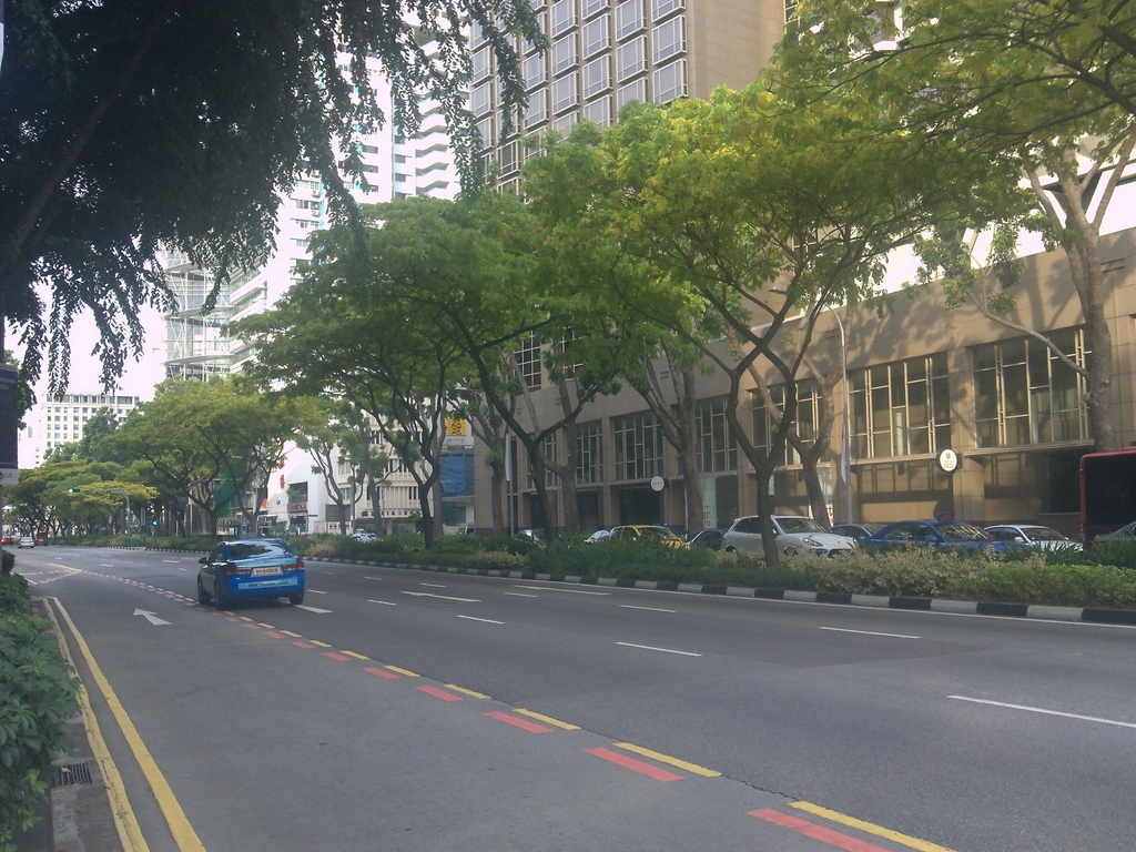 See? Pohon-pohon hijau nan rindang berdiri anggun mengapit jalanan yang mulus teraspal sempurna, membentuk sebuah atap alami yang melengkung menaungi para pejalan kaki dari panasnya matahari. Singapore is a lovely city, it’s a good place to live 🙂