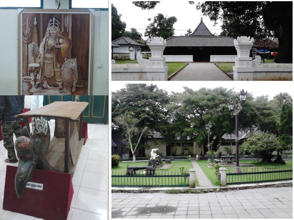 Kami lalu beringsut ke sebuah lukisan seorang pria gagah yang ternyata adalah Prabu Siliwangi. Lukisan yang konon memiliki daya magis ini dibuat oleh seorang pemuda-Cirebon-yang-gue-lupa-siapa-namanya pada tahun 2004. Gue kira lukisan kuno. Kenapa dikatakan magis, karena mata sang Prabu dalam lukisan tersebut akan dapat tetap tertuju kepada kita, meski kita melihatnya dari depan atau samping. Sang guide menambahkan, pernah ada kejadian pengunjung yang kerasukan Prabu seusai berfoto di sampingnya. Katanya, sang pelukis sendiri sebelumnya memimpikan Prabu Siliwangi dalam tidurnya, yang kemudian dituangkan dalam bentuk lukisan. Yah, percaya nggak percaya sih, tapi kalau kata gue, mata lukisan yang seolah-olah terus melihat kita itu bisa dibuat dengan teknik tertentu. Bukan gue nggak percaya dengan hal-hal mejik, tapi selama itu masih bisa dijawab dengan logika, gue masih akan berpegang dengan logika lebih dulu. Any suggestions?
