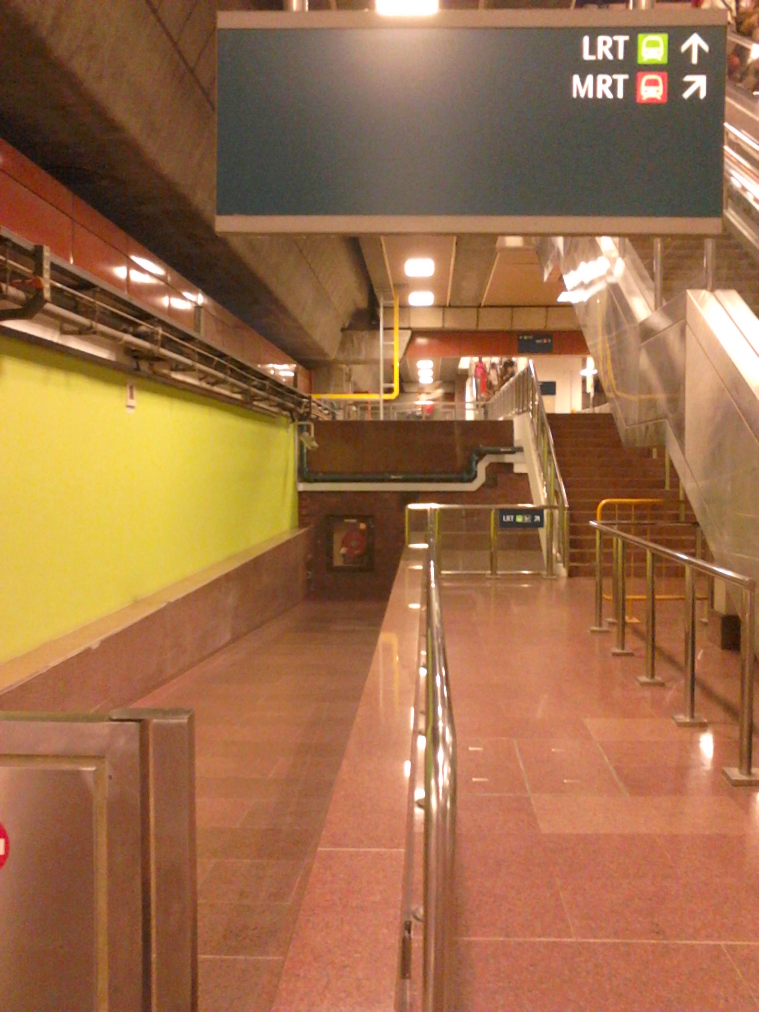 Turun dari kereta MRT, gue berjalan keluar dari peron, mencari-cari petunjuk menuju peron LRT. Petunjuk itu tidak sulit gue temukan, karena setiap stasiun MRT menyediakan fasilitas yang lengkap, termasuk petunjuk arah. Tidak seperti jika menuju peron MRT (misalnya saat berganti line) di mana calon penumpang dimanjakan dengan fasilitas tangga berjalan / eskalator, gue berjalan menuju peron LRT melalui anak-anak tangga reguler. Tidak perlu membeli tiket lagi, karena MRT dan LRT merupakan sebuah kesatuan dari sistem pengakutan massal Singapura yang terintegrasi.