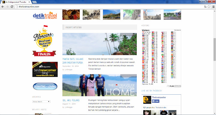 Yang jelas, aku selalu menikmati setiap kunjunganku di blog The Lostraveler ini. Frekuensi penerbitan tulisannya memang tidak terlalu tinggi. Satu minggu juga belum tentu ada tulisan baru. Tapi, justru itulah yang menjadikan blog ini spesial. Kata demi kata dirangkai dengan hati-hati, kalimat demi kalimat berpadu dengan manis, hingga tercipta sebuah tulisan utuh yang istimewa.