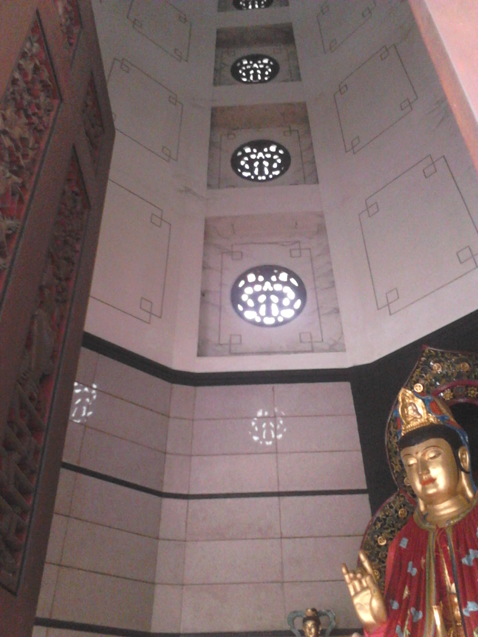 Di lapis pertama ini terdapat sebuah patung Buddha besar, sementara patung dewa-dewi ditempatkan di bagian luar, masing-masing menghadap arah mata angin yang berbeda-beda. Pada lapis kedua dan selanjutnya, konon terdapat Patung Dewi Kwan Im yang juga menghadap ke arah empat mata angin. Aku sendiri tak melihatnya langsung karena pagoda tidak dapat dinaiki, tidak seperti saat di Pagoda Chinese Garden, Singapura.