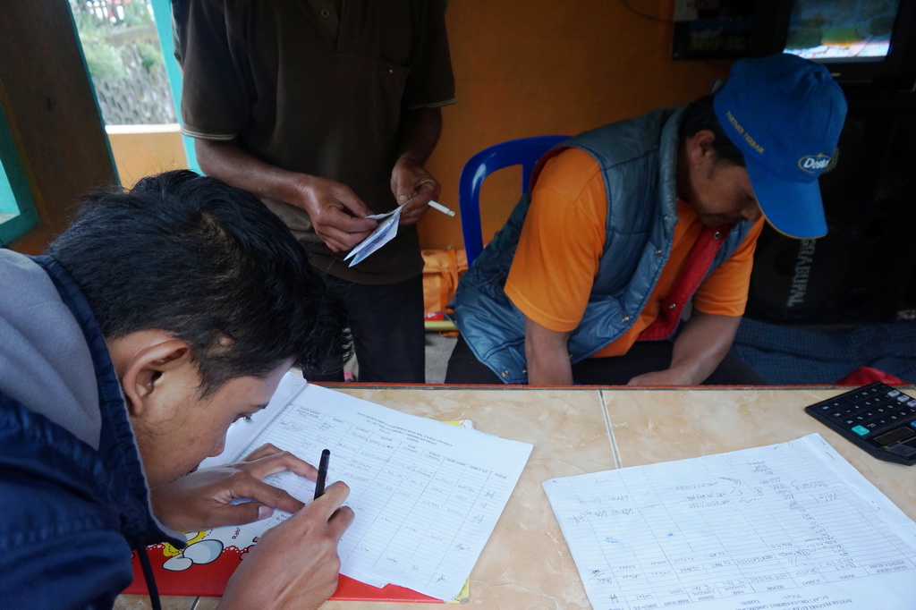 Tiba di basecamp, gue dan Aji bertemu dengan 3 anggota pendakian lain yang masih menunggu kami. Lalu, setelah beberapa menit bergumul dalam perbincangan ringan, kami pun bergerak menuju pos pendaftaran (Rp 11.500,00) dan resmi memulai pendakian menuju Puncak Merbabu.