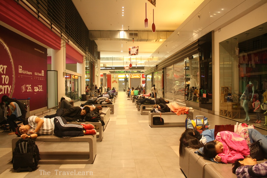 Ya udah, akhirnya gue kelarin makan malam di KFC sambil menunggu handphone terisi penuh. Setelah itu, gue berjalan menuju sebuah lapak lesehan dan bangku-bangku panjang yang ada di samping Old Town White Coffee dan Celcom. Ada banyak calon dan mantan penumpang yang beristirahat di situ. Dari yang sekedar duduk-duduk ganteng sambil memainkan gadget, sampai yang tidur ngampar di atas karpet dan udah nggak peduli gimana rupanya.