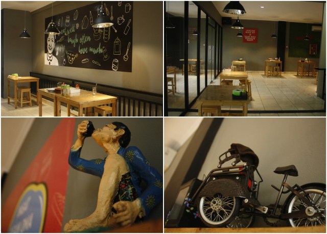 Lantai satunya sih biasa-biasa aja ya, kayak desain interior rumah makan kelas menengah pada umumnya. Setelah naik ke lantai 2, beuh… ternyata instagrammable juga! Ada petuah-petuah oma yang dipampang pada papan-papan artistik, lampu yang menyorot keemasan, cantik berpadu dengan susunan meja-kursinya yang terbuat dari kayu. Duh, serasa di rumah oma seperti tema yang diusungnya. Lantai 2 Waroenk Talubi juga memiliki outdoor seating area di mana kamu bisa bersantap sambil menikmati lalu lalang Jalan Suryakencana yang sibuk.