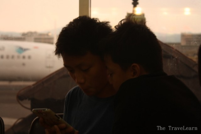 Tak banyak yang bisa kulakukan saat itu. Berkali-kali menghidupkan layar telepon pintar untuk memeriksa notifikasi. Mengobrol dengan sesama calon penumpang. Mengambil foto. Menenangkan diri bahwa aku akan tetap bisa mengejar penerbangan lanjutan menuju Bangkok.