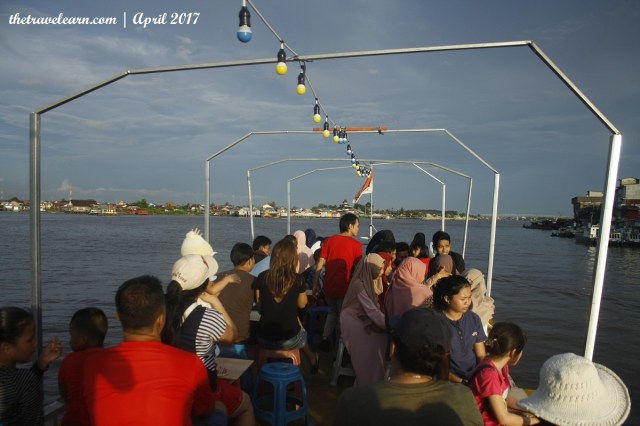 Perjalanan menaiki perahu ini cukup lama rupanya. Perahu terus berjalan hingga melalui Jembatan Tol Kapuas, sebelum akhirnya berputar arah dan kembali ke tempat semula.