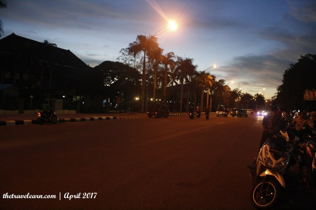 Sebagai pecinta area publik terbuka nan rindang, apalagi berada di tepi sungai, gue nggak boleh melewatkan kunjungan ke Taman Alun Kapuas. Tempat ini populer sebagai tempat kumpul murah meriah bagi warga lokal Pontianak. Begitu sampai di sana, gue dan Yonky langsung dibuat pusing dengan lahan parkir yang tersedia.