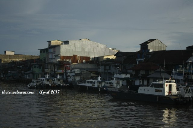 Kawasan tepi Sungai Kapuas ini cantik. Ada promenade atau jalur pedestrian, kelihatannya belum lama dibangun, yasyik buat jalan-jalan santai di tepi sungai. Asal jangan pas siang bolong kayak sekarang aja sik, hehe. Dari promenade, kami menyaksikan pemandangan kapal-kapal besar yang berjalan melintasi Sungai Kapuas yang agung.