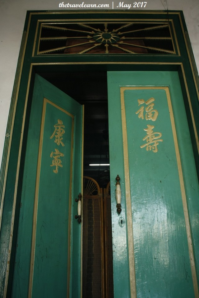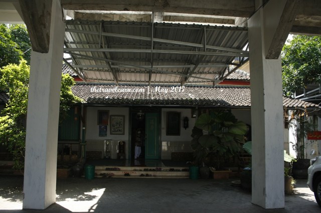 Tengoklah pada bola-bola lampion yang masih tergantung di bawah atap teras, atau di bawah atap musholla yang ada di sisi kiri halaman utama dari arah kedatangan. Atau lihatlah huruf-huruf kanji Cina yang juga masih terpampang pada pintu masuk rumahnya yang berbalut warna hijau toska.