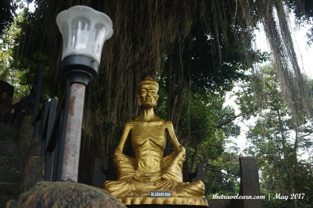 Lanjut kepada situs ke-2, di sini berdiri patung Sidharta Gautama yang digambarkan dengan badan kurus sampai tulang-tulang rusuknya menonjol. Situs ini menceritakan Siddharta Gautama saat berpuasa selama 6 tahun di Hutan Uruvela, India. Duh, dik Nugi mah puasa 6 hari aja udah mukjizat!