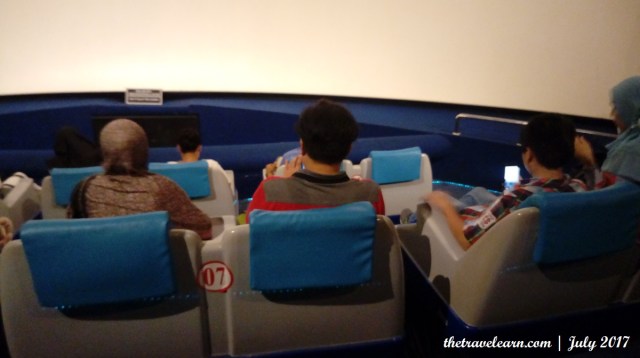 Lama cuplikan sekitar 15 menit aja sih, padahal seru banget! Sepanjang film, penonton pada cekikikan sendiri atau ber-whoaaa atau ber-whooo seiring dengan kursi yang bergerak-gerak heboh. Tenang, tiap kursi dilengkapi dengan sabuk pengaman, jadi nggak perlu cemas kamu akan jatuh terjengkang dari kursi. Paling-paling jatuh hati aja sama gue. #lho
