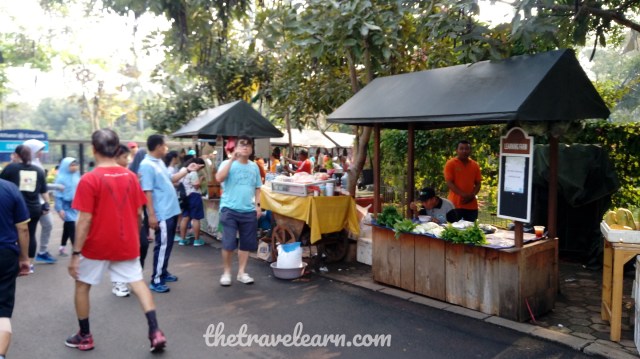 Aku senang mengamati kesibukan warga Jakarta di pasar kuliner Ecopark pagi itu. Sebagian menikmati sarapan sambil berbincang ringan dengan setelan santai. Sebagian jogging dalam kelompok kecil. Sebagian lagi bersepeda berpasang-pasangan.