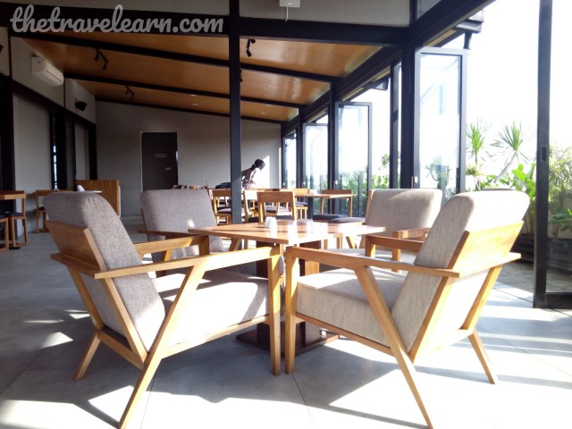 Ada banyak pilihan tempat duduk di sini. Dari sofa panjang, kursi kayu, kursi rangka kayu dengan alas dan sandaran yang empuk, sampai kursi-kursi tinggi di bar. Mau datang sendiri, berdua, berempat, atau rame-rame, ada pilihannya sendiri-sendiri. Tersedia outdoor dan semi-indoor seating area, dua-duanya nggak terlalu signifikan kok (kecuali kalau kamu duduk di sudut yang terdalam). Itu karena ruang semi-indoor cafe ini hanya dibatasi dengan jendela kaca berbingkai kayu dengan gaya floor-to-ceiling yang dibiarkan terbuka. Praktis, udara dan cahaya alami memiliki sirkulasi yang baik di berbagai penjuru.