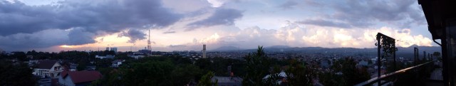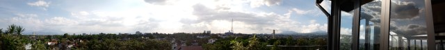 panoramic sunset view from morning glory rooftop cafe, bandung