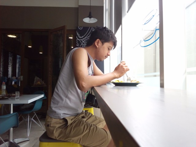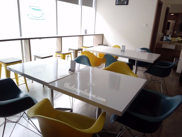 Ruang makan disusun di samping lobi, menyediakan meja dan kursi yang ditata dengan konsep berkelompok maupun dengan konsep bar. Meja bar mengelilingi salah satu sisi ruang makan dengan kursi-kursi tingginya. Yang menyenangkan buat gue, lobi dan ruang makan ini mendapat asupan cahaya alami, rasanya jadi sehat dan segar.