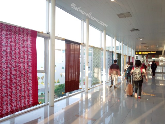 Bandara Depati Amir kelihatan bersih dan modern yah! Suka display kain-kain tradisionalnya di arrival hall 🙂