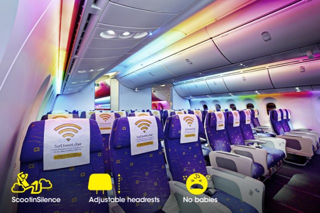 Nggak perlu cemas sama masalah yang satu ini. Scoot udah menyesuaikan dirinya supaya cocok dipake terbang berjam-jam ke Berlin dari Indonesia atau Singapura. Untuk rute ke Berlin ini, Scoot akan menggunakan pesawat Boeing 787 Dreamliner yang badannya bongsor! Akan ada 3 baris (twin aisles) tempat duduk penumpang, jarak antar kursi yang lega hingga 31” untuk kursi ekonomi, kompartemen (head storage) lebih besar, dan in-seat power buat ngechas handphone atau gadget lainnya.