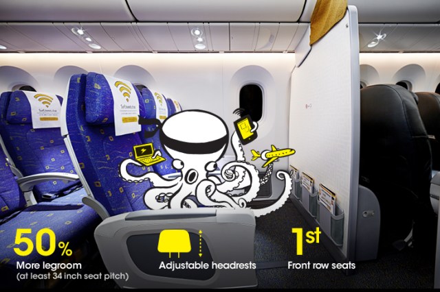 Selain beberapa fasilitas wajib di atas, kita juga bisa memesan Kursi Super (34” seat pitch), Kursi Regang (50% leg room, setidaknya 34” seat pitch), dan ScootinSilence. Ketiganya dilengkapi dengan sandaran kursi yang dapat diatur (adjustable headrests). ScootinSilence adalah zona hening di dalam kabin Scoot yang bebas dari gangguan anak-anak di bawah usia 12 tahun. Lokasinya berada di baris terdepan masing-masing kelas, baik itu kursi ekonomi, kursi regang, maupun kursi super. Kursi ekonomi ScootinSilence juga punya adjustable headrests lho. Fasilitas tambahan ini bisa kita pesan dengan mudah saat melakukan reservasi online di flyscoot.com.