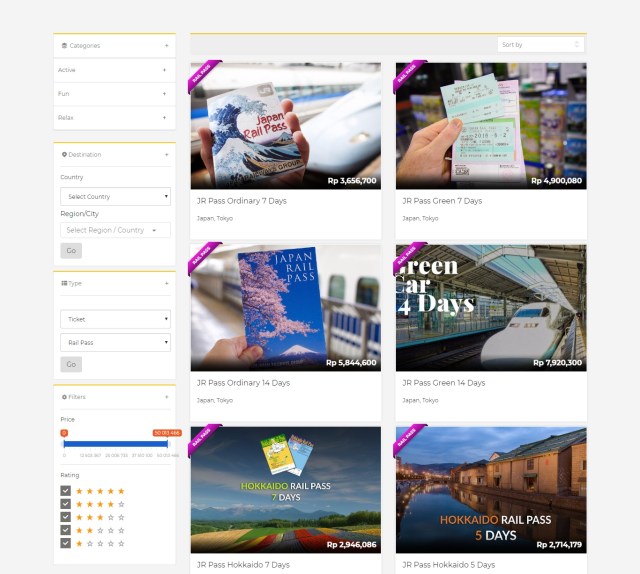 Poin pertama ini emang spesifik banget, khusus buat kamu yang mau jalan-jalan ke Jepang kayak gue. Iya, pembelian Japan Rail Pass emang udah dari dulu dilakukan dengan online. Nah, baru-baru ini gue menemukan satu online tour and activities marketplace bernama Vizitrip yang melayani pembelian JR Pass ini dalam satu halaman! Produknya macam-macam banget, dari JR Pass Ordinary 7 Days dan 14 Days, JR Pass Green 7 Days dan 14 Days, JR Pass Hokkaido (3, 5, dan 7 Days), JR Hokuriku Arch Pass 7 Days, JR Pass West Kansai Wide 5 Days, dan masih banyak lagi! Bahkan Tokyo Metro & Subway Pass dan Suica Card-nya juga ada lho.