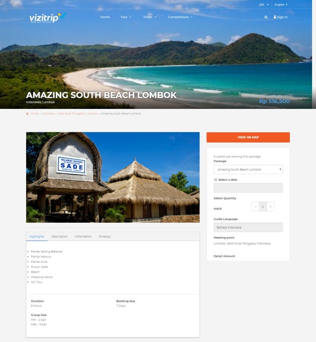 Gw udah lihat websitenya Vizitrip. Gw merasa konten produknya kudu banyak dibenahi, karena banyak informasi yang kurang lengkap.