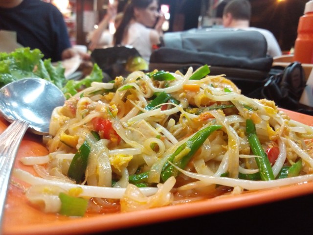 Gue udah nyaris nggak kuat lagi, emosi gue meningkat karena capek, laper, dan nggak enak badan. Akhirnya kami makan di restoran di depan hotel yang menyediakan makanan Thailand, tapi dikelola olah orang India. Seluruh rumah makan yang kami lalui udah tutup, dan opsi paling meyakinkan adalah rumah makan itu. Rasanya not bad, seporsi pad thai dan teh tarik (thai tea) panas gue tebus dengan harga 200 THB.