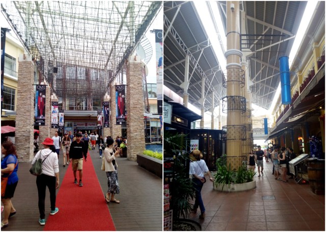 Hujan sempat turun dengan deras setelah kami foto-foto di depan kapal. Staf mal dengan sigap membuat sebuah terowongan yang menghubungkan antara lorong berkanopi dan public square agar pengunjung tidak kehujanan. Ada celah yang tak terlindungi di antara kedua titik itu. Gue salut melihat betapa seriusnya mereka memberikan pelayanan terbaik buat konsumen. Udah pernah lihat mal di Indonesia (atau tempat lainnya) kayak gitu belum? Gue sih belum ya.
