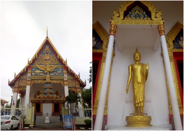 kanan: patung Buddha di pintu depan wat mongkol nimit