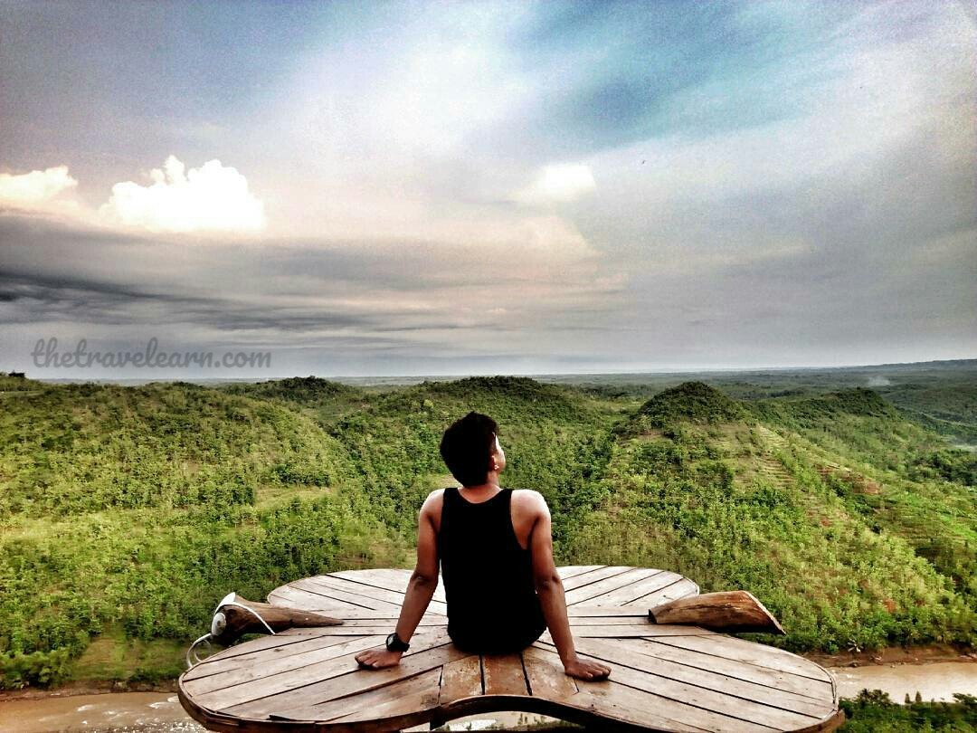 Masih di kabupaten yang sama, di hari yang sama, gue dan Bayu melanjutkan petualangan kami ke Bukit Panguk Kediwung, sebuah obyek wisata kekinian yang sebetulnya paling enak dikunjungi pagi-pagi saat terbitnya matahari berpadu dengan gulungan kabut. Tempat wisata ini berdekatan dengan Bukit Mojo Gumelem, Jurang Tembelan, Watu Lawang, Puncak Songgo Langit, Kebun Buah Mangunan, Puncak Becici, dan Hutan Pinus. Jadi bisa kamu agendakan seharian penuh eksplor tempat-tempat itu dari sunrise sampai sunset.