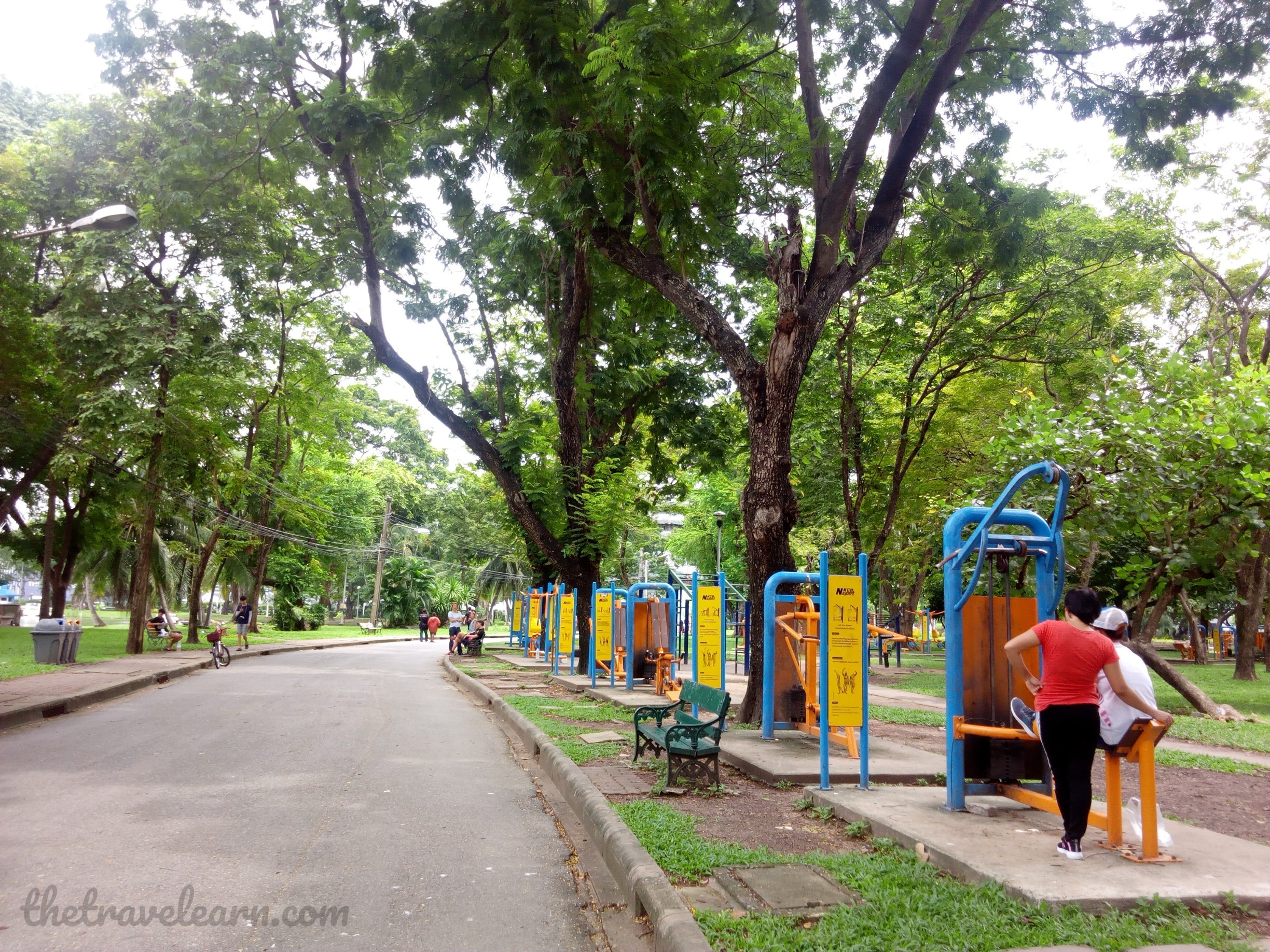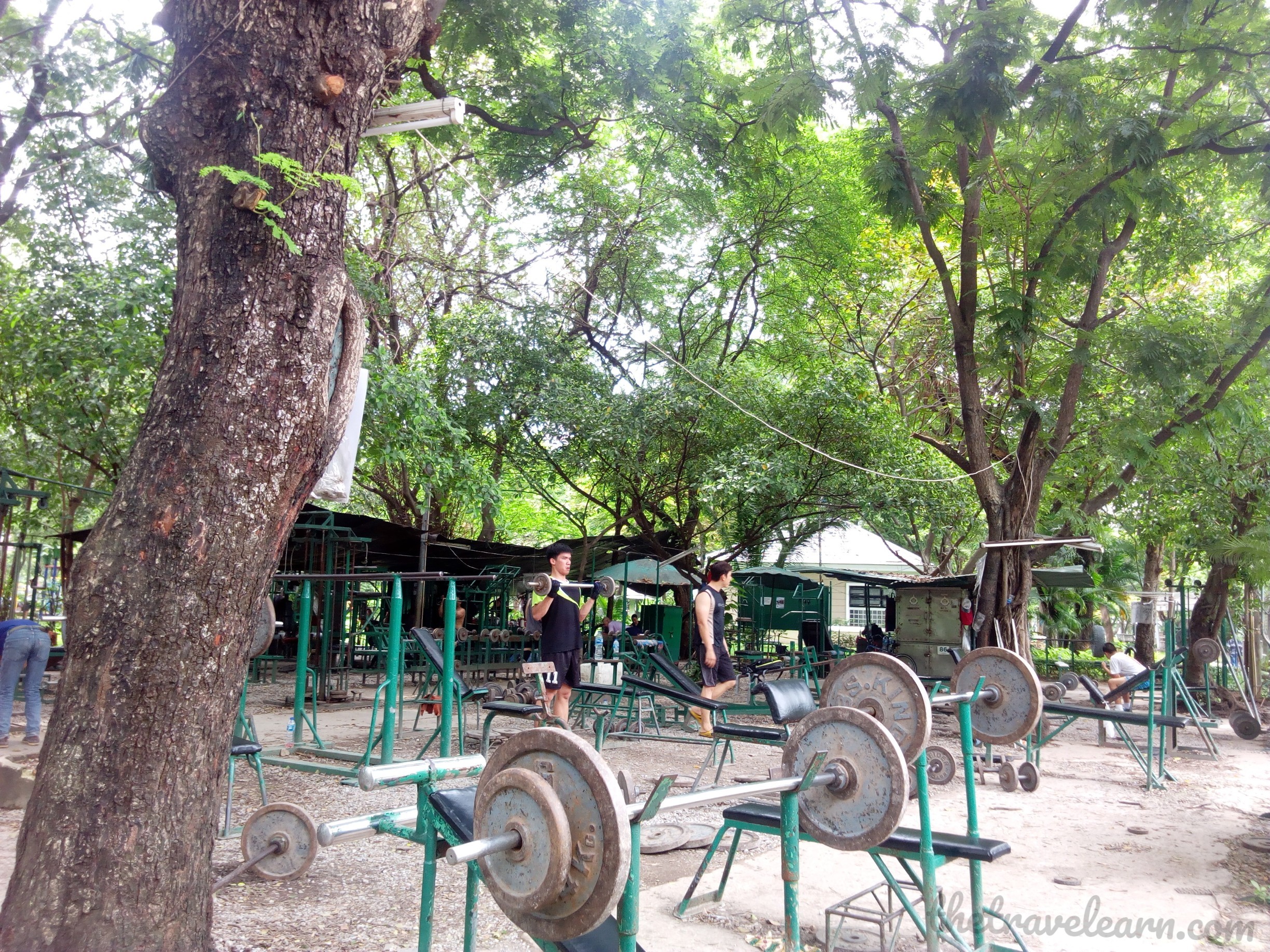 Nggak tahu apakah Lumphini Park Outdoor Gym ini gratis apa enggak. Mungkin dia dibagi dalam area gratis dan area berbayar (yang berisi alat-alat berat, ramai digunakan cowok-cowok). Duh, gue yang tangannya kurus tapi perutnya buncit ini jadi malu sendiri.