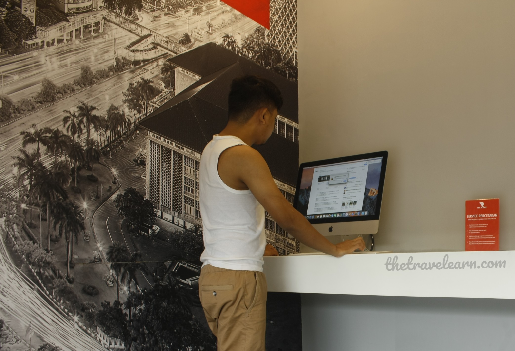 Internet Corner hadir di salah satu sudut Red Planet Pasar Baru dengan 2 personal computer (PC) Mac yang modern! Kalo kebetulan kamu nggak bawa laptop, pake aja komputer di Internet Corner ini. Ada juga Selfie Corner yang ada di seberang front desk, kita bisa selfie lalu hasil fotonya dikirimkan ke email kita. Lumayan seru buat nunggu giliran check-in!