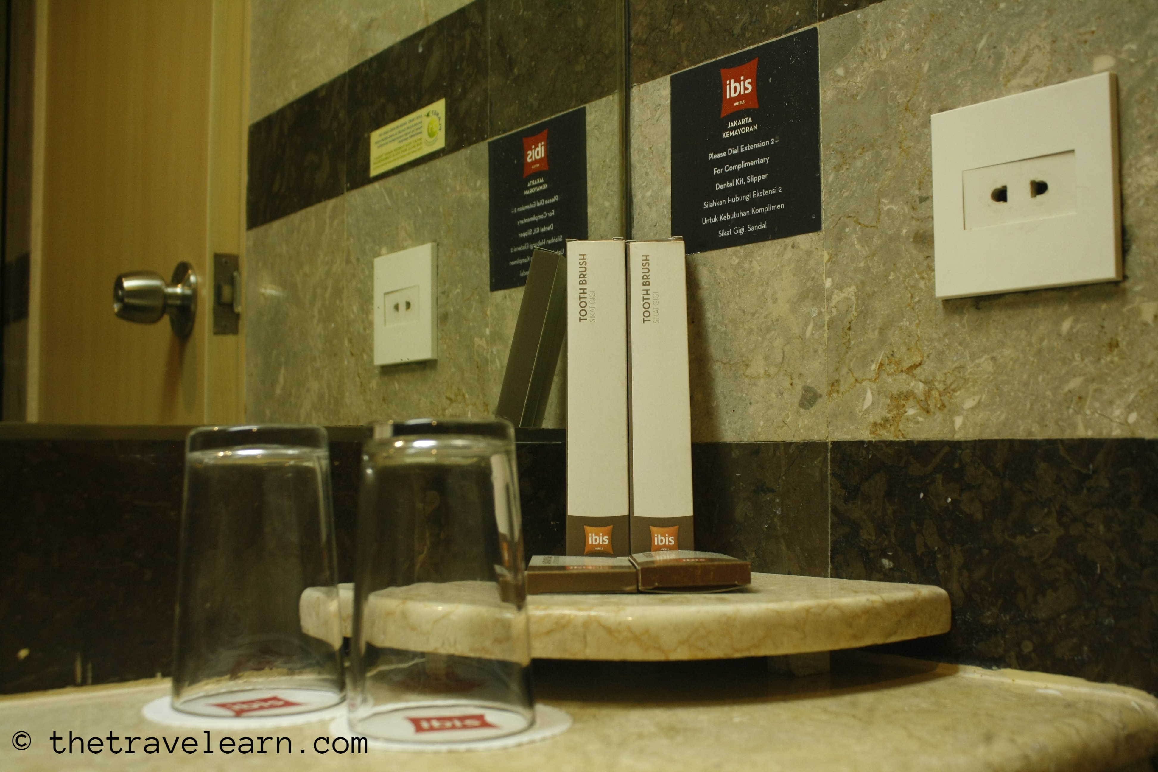 Nah, luas kamarnya sih biasa aja, tapi ternyata kamar mandinya lega bangeeettt! Kata mbak Cindy Unsri, Marketing Communication Ibis Jakarta Kemayoran, kamar mandi Ibis Jakarta Kemayoran ini yang paling luas se-Ibis lho. Mungkin karena Ibis Jakarta Kemayoran ini adalah unit Ibis pertama di Indonesia, jadi masih menggunakan desain kamar mandi klasik yang luas. Walaupun unit pertama, tapi seluruh properti dan interior Ibis Jakarta Kemayoran ini tetap bersih dan nggak lusuh, serius! Jadi memang terlihat dirawat banget.