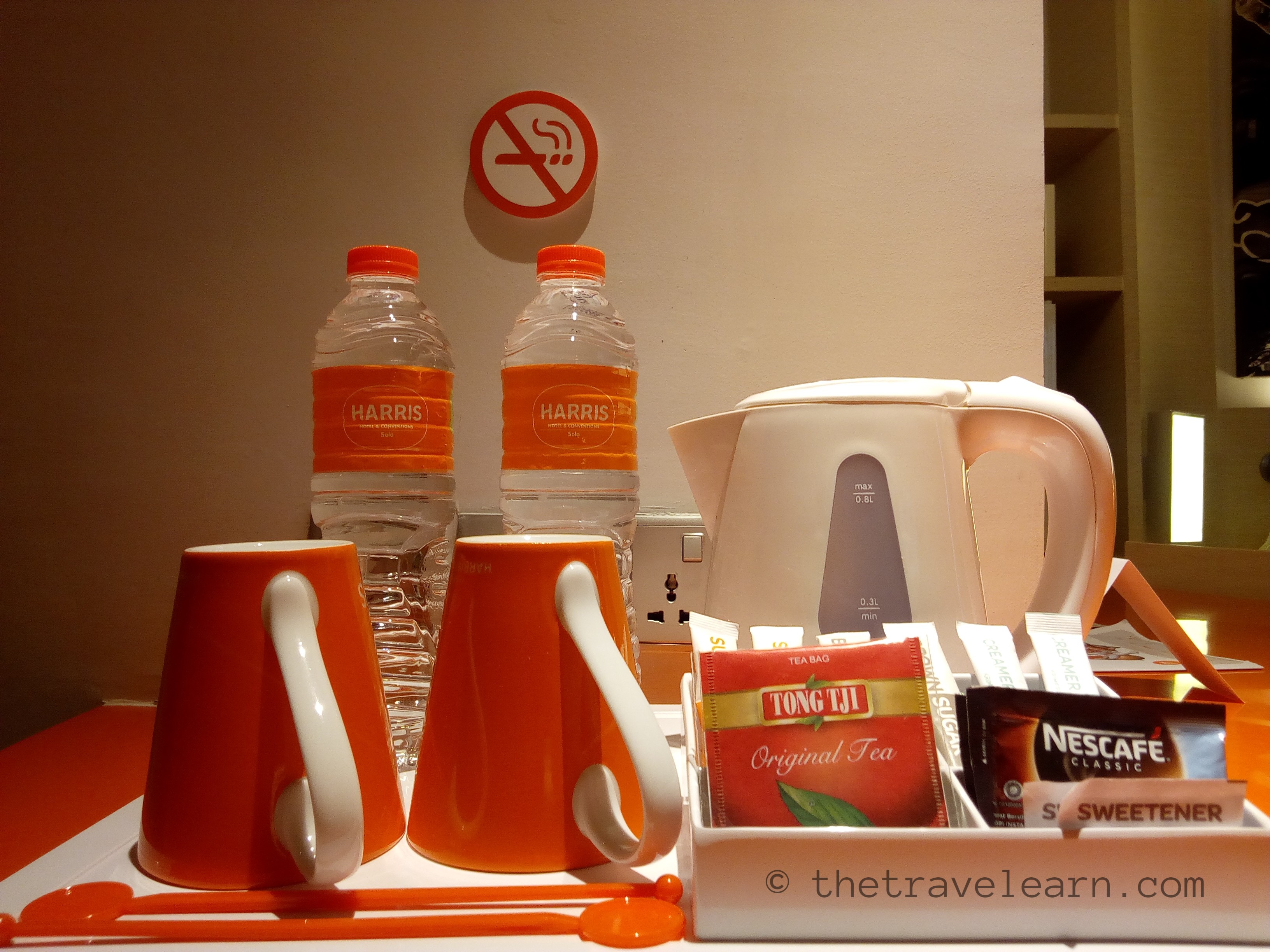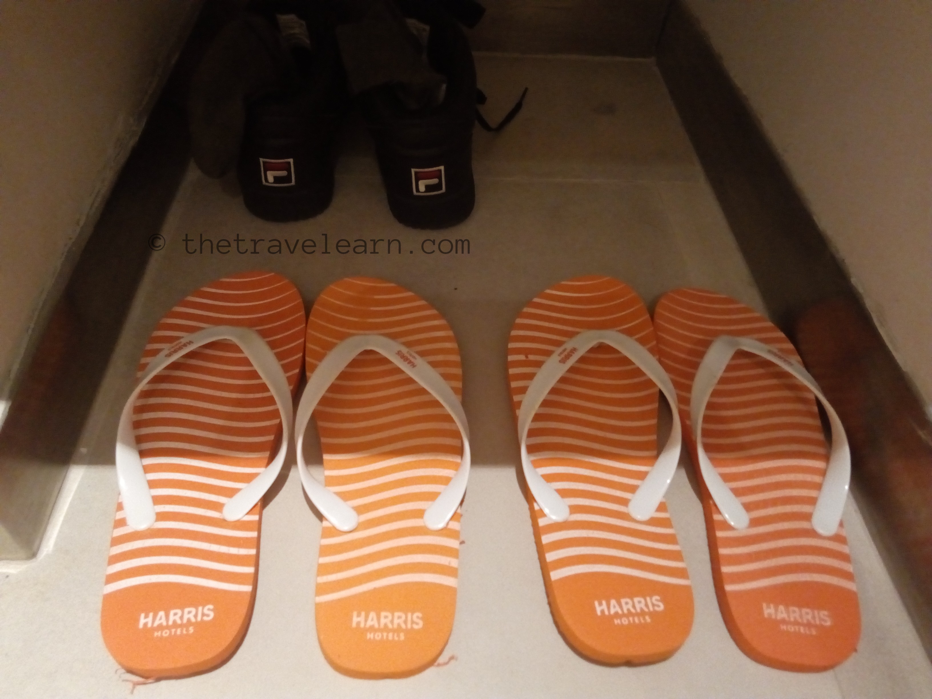 Aku belum pernah nih nginep di Harris manapun. Tapi lucuuuu banget yaa. Sandal jepitnya lucu orange. Mug nya juga. Sukaaaa….