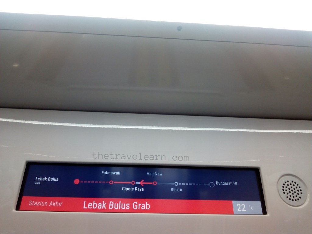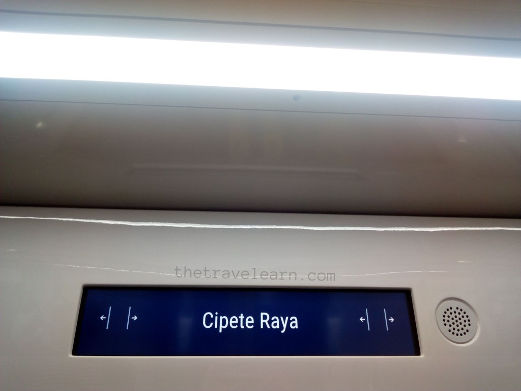 On board the trains, we will have passenger announcements in Bahasa and English, animated information board, and special coaches for ladies at peak hours on weekdays. After boarding the train, we will be greeted, “Dear, Passengers. Welcome aboard, this train is bound for Lebak Bulus Grab Station, Lebak Bulus Grab Station.” Then after a few minutes, “Next station, Dukuh Atas Station, Dukuh Atas Station. The door on the left side will open.” I love the animated information board! It shows us current station, the next station, and our coach position when the train stops at platform so we know where direction we should take after alighting. Strangely, the additional information is given right after the greeting, not before/after the next station announcement. So, after the greeting, suddenly it says, “Alight here if you want to take the airport train…” Please watch my videos below to hear the exact announcements.