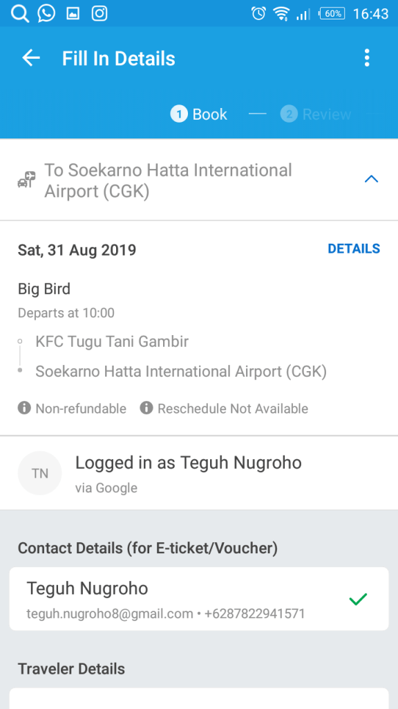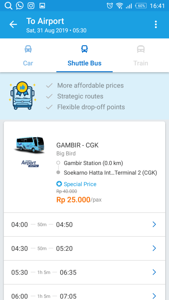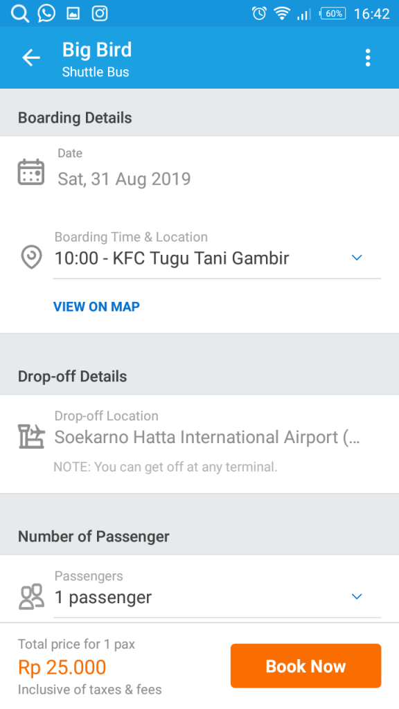 Ini salah satu baladaku kalau dari bandara galau mau naik kereta bandara atau bus, apalagi kemarin sudah malam juga sampai di CGK. Next bisa dicoba juga nih pakai Big Bird, ini pun bisa pesan via Traveloka ya.