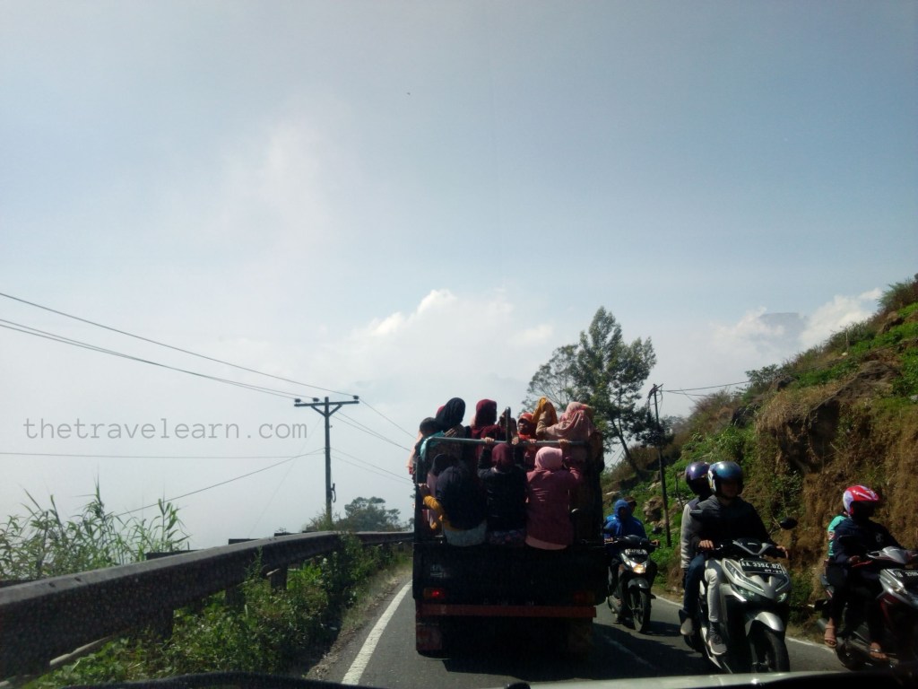 Mendekati Puncak Bukit Sikunir, perjalanan kami yang lancar menjadi tersendat. Banyaknya wisatawan yang sudah memadati kawasan ditambah perbaikan jalan yang menjadi satu-satunya akses ke Puncak Bukit Sikunir menciptakan kemacetan sepanjang beberapa ratus meter. Kami bahkan nggak bisa memarkirkan mobil di tempat parkir utamanya yang berada tepat di depan titik awal pendakian Sikunir.