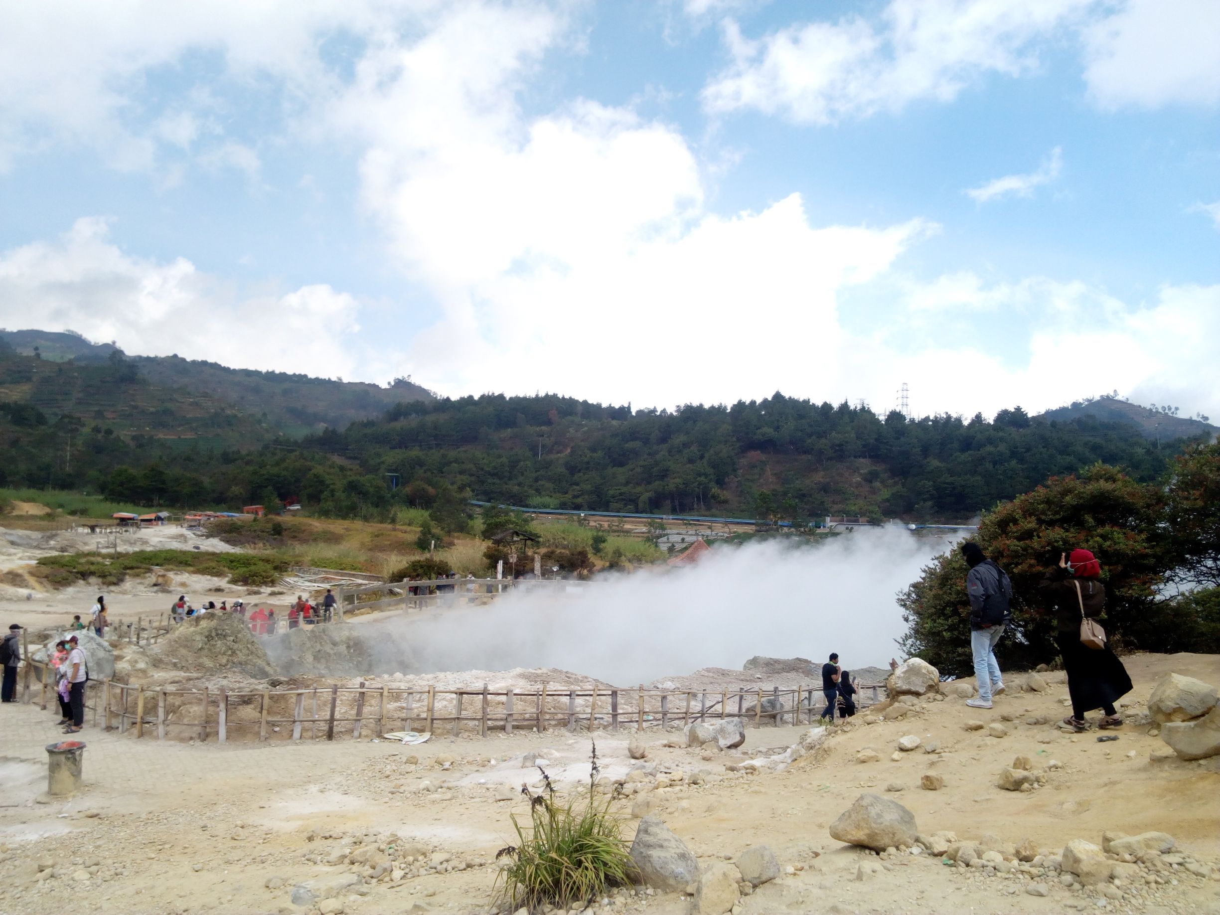 Ada satu kawah utama dan titik-titik gas belerang mengepul di sekitarnya. Ada beberapa spot foto, tapi berbayar, jadi kami agak males hehe. Cari yang gratisan aja. Dinamakan “sikidang”, karena kawah utamanya berpindah-pindah, nggak bertahan di satu titik selamanya. Aroma sulfur memang tercium, tapi masih cukup bearable. Selain atraksi kawah, ada flying fox dan ATV juga di sini. Karena kurang menarik dan nggak banyak juga yang bisa dieksplor, kami nggak berlama-lama di sini, sebentar kemudian udah move on ke destinasi berikutnya.