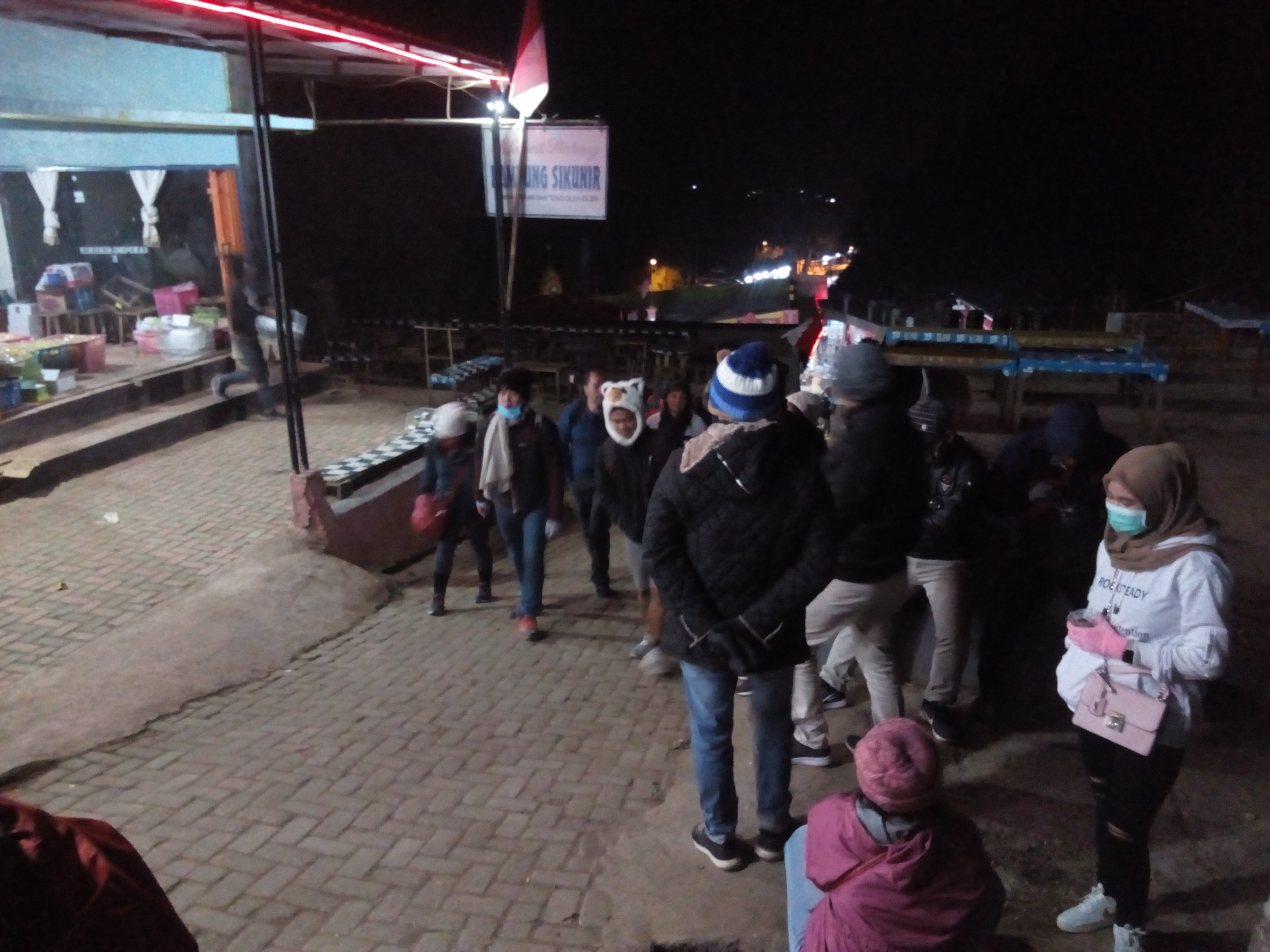 Koh Sunhong, rekan sekamar, segera ikut terbangun. Gue lalu masuk ke kamar sebelah yang pintunya tak terkunci. Gue nyalakan lampu kamar itu dan mendapati Sanny masih tidur dengan sekujur tubuh yang sepenuhnya tersembunyi di balik selimut dari kepala hingga kaki. Walaupun tak langsung berhasil dalam usaha pertama, namun akhirnya Sanny terbangun juga. Kami bertiga sudah siap, driver kami juga sudah tiba di lobi homestay, sekitar pukul 4 pagi pun kami mulai berkendara menuju destinasi pertama hari itu, Puncak Bukit Sikunir.