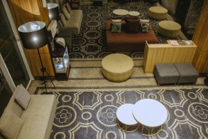 Seating area yang lega di lobi Mercure Nexa diisi dengan sofa-sofa empuk dalam berbagai warna dan rupa. Dua meja konter melayani setiap tamu dan pelanggan. Dekorasi ditata apik di sana-sini, namun tanpa berlebihan. Ada beberapa bahan bacaan. Di sudut ruangan, ditempatkan meja tinggi dan kursi-kursi bar dengan TV dan lampu-lampu keemasan yang menjuntai ke bawah. Colokan listrik tersedia di meja itu. Area yang dirancang menyerupai café itu terletak berseberangan dengan tangga menuju ruang-ruang rapat.