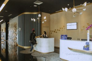 Aplikasi dinding kacanya yang menghadap arah barat memberi kesempatan bagi cahaya keemasan dari tenggelamnya matahari untuk merangsek masuk ke dalam. Ah, gue tiba di saat yang tepat. Jadi, kalau mau foto-foto di lobinya Mercure Nexa, waktu terbaiknya adalah saat malam hari dan sore jelang senja.
