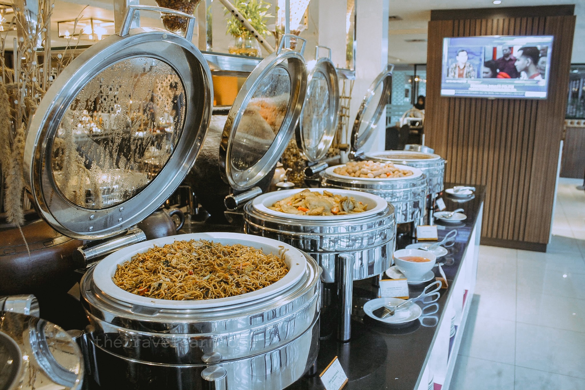 Pilihan minumannya juga beragam. Selain itu, juga tersedia kopi dari coffee maker yang sayangnya malah lupa gue foto. Jadi nggak cuma lengkap, tapi penyajian dan kualitasnya juga berkelas. Ada beberapa opsi untuk karbodidrat. Selain nasi putih, roti, dan kue, juga ada nasi goreng, potato wedges, dan mie goreng.