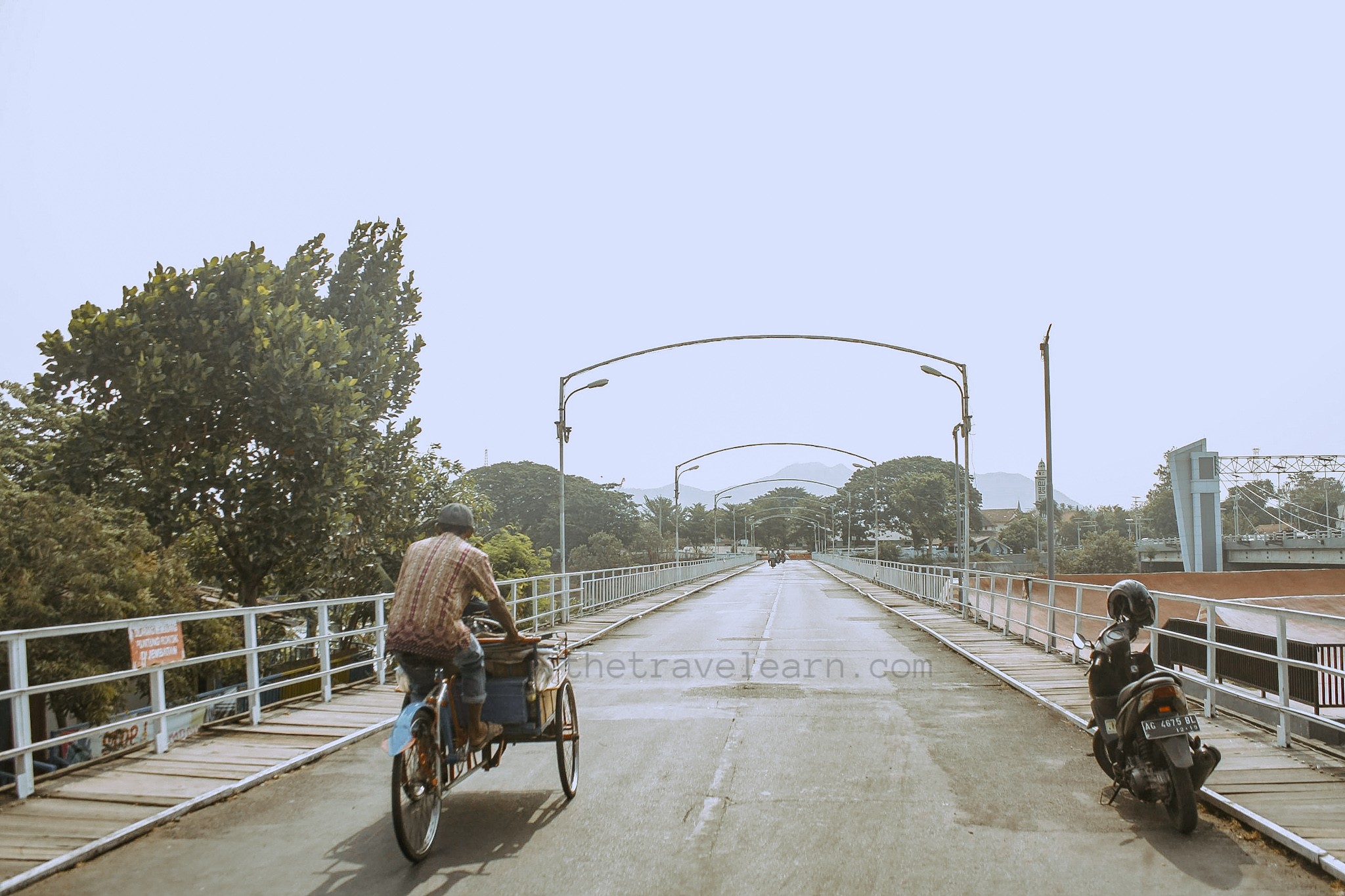 Puas dengan jembatan baru, gue beralih kepada jembatan lain yang lebih bersahaja di sisinya: Jembatan Lama Dahanapura. Sebelum Jembatan Brawijaya ada, Jembatan Lama inilah yang menjadi andalan warga untuk menyeberangi sungai. Jembatan Lama Kota Kediri mulai beroperasi sejak 18 Maret 1869 setelah beberapa kali mengalami kegagalan. Kini, jembatan ini hanya digunakan untuk kendaraan roda dua dan kendaraan tak bermotor.