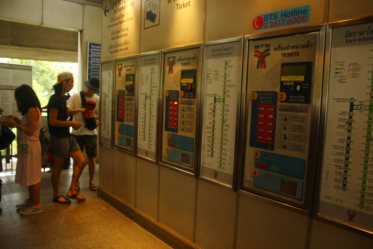 Mesin tiket BTS Bangkok, perhatikan peta dan petunjuk harga di papan sebelah kanan