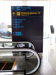 Papan petunjuk di stasiun skytrain Terminal 3, Bandara Internasional Soekarno-Hatta
