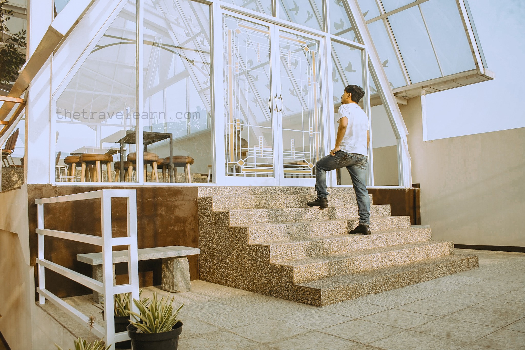 Baru kali ini juga gue menginap di properti RedDoorz yang punya fasilitas rooftop. Rooftop RedDoorz Premium near Bandung Station ini ada di lantai tujuh. Fasilitas di dalamnya macem-macem. Ada restoran, kolam renang, seating area yang luas, dan semacam bangunan kaca berbentuk seperti kapel yang bisa disewa untuk private small party atau semacamnya.