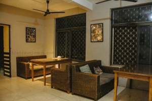 - Banyak area duduk di Banana Hostel Haikou, Hainan