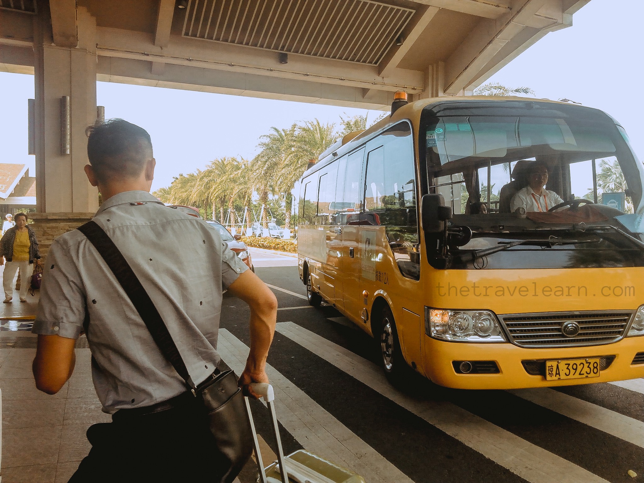 Dari depan gedung terminal internasional Bandara Haikou itu, gue naik free shuttle bus yang warnanya kuning ngejreng menuju gedung terminal domestik. Jarak keduanya deket, cuma 800 meter, jadi kita juga bisa jalan kaki kalau mau. Kalau jalan kaki tinggal lurus aja ke arah kiri, sementara kalau naik bus rutenya memutar. Nah, di terminal domestik itulah stasiun suburban train Haikou dan stasiun kereta cepat berada. Posisinya ada di sebelah kanan pintu masuk setelah turun dari bus. Tadinya gue mau cobain suburban train-nya. Tapi karena nggak ada opsi bahasa Inggris di mesin tiketnya (gue nyerah di tahap terakhir) dan pembayarannya nggak bisa cash, akhirnya gue masuk aja ke dalam gedung terminal domestik.