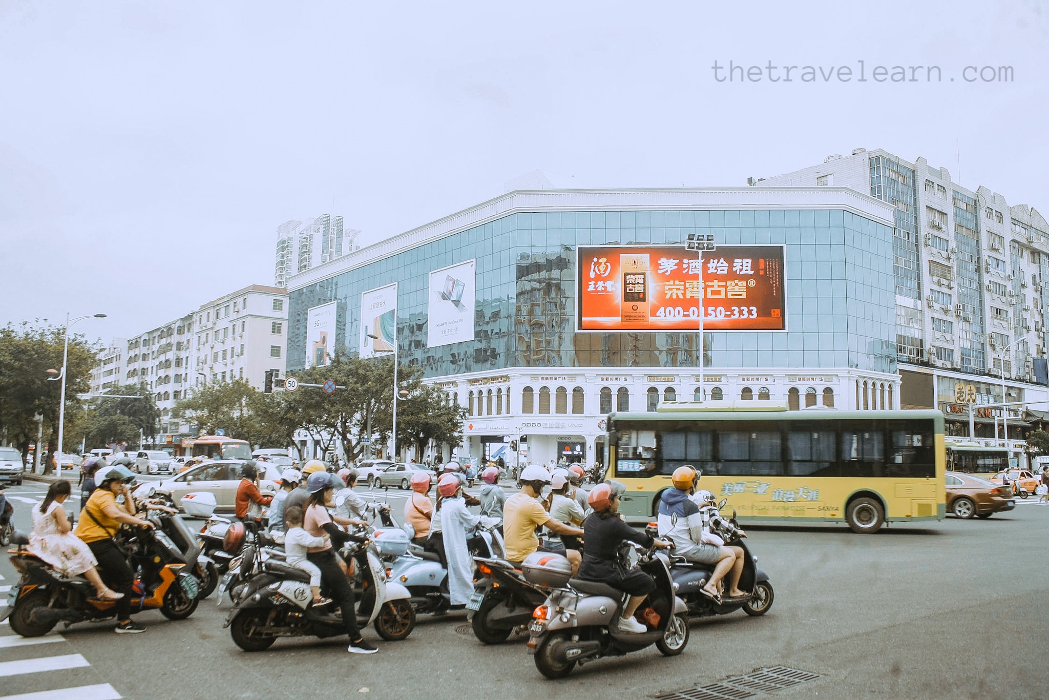 Sebagian besar warga Hainan bepergian dengan motor listrik atau sepeda listrik. Tiap kali gue jalan kaki dan melihat laju gesit mereka, gue membatin, “Enak banget ya naik motor listrik itu.” Puji Tuhan gue bisa merasakannya sendiri, dan memang enak banget hehe.